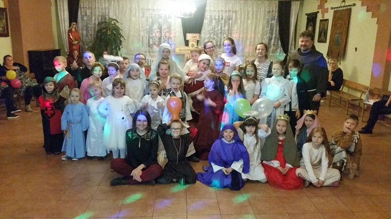 Matka Boża, św. Józef, św. Dorota, św. Julia, św. Jadwiga Królowa, św. Dominik Savio, św. Urszula, św. Jan Paweł II, św. Marta, św. Oliver, św. Jerzy, św. Oliwia, św. Kornelia, św. brat Albert, św. Jan Chrzciciel, bł. ks. Jerzy Popiełuszko, św. Krzysztof, św. Franciszek z Asyżu, św. Franciszek Marto oraz św. Aniołowie Stróżowie na czele ze św. Michałem Archaniołem – oto Święci, którzy bawili się z nami na Balu Wszystkich Świętych w sobotę, 18 listopada, w domu katechetycznym.