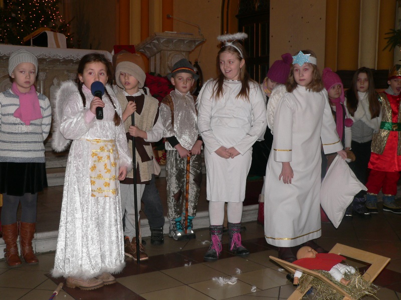 „<<Pozwólcie dzieciom przychodzić do Mnie, nie przeszkadzajcie im; do takich bowiem należy królestwo Boże. Zaprawdę, powiadam wam: Kto nie przyjmie królestwa Bożego jak dziecko, ten nie wejdzie do niego.>> I biorąc je w objęcia, kładł na nie ręce i błogosławił je” (Mk 10, 14-16). Wiek dziecięcy wraz z jego niewinnością i ufnością jest szczególnie umiłowany przez Chrystusa. Dlatego wielka musiała być radość w niebie kiedy dzieci z klasy II B podczas niedzielnej Mszy św. o godz. 9.00 przedstawiały jasełka w naszym kościele.
