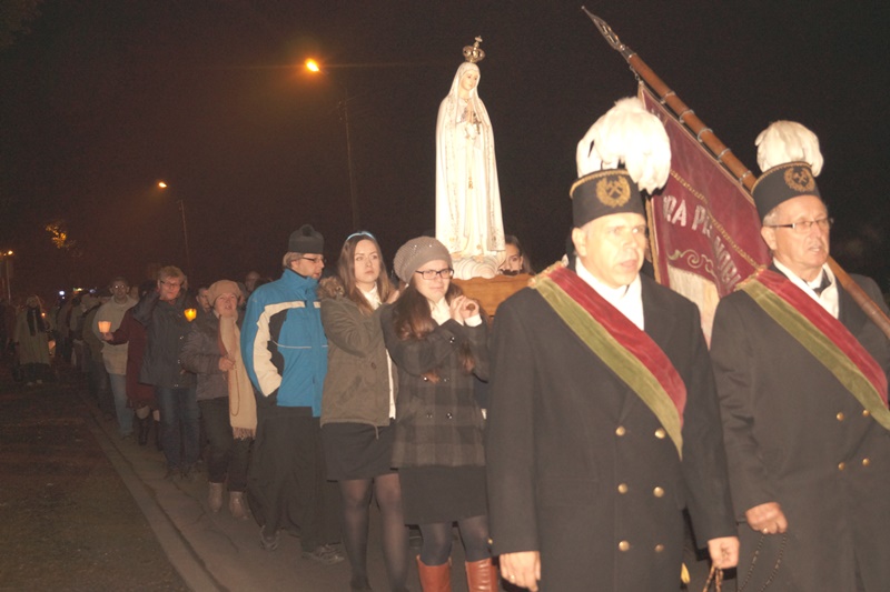 Matka Boża ukazując się w Fatimie powiedziała dzieciom: „Odmawiajcie codziennie różaniec, aby uzyskać pokój dla świata i koniec wojny!”. Posłuszni Jej prośbie we wtorek, 13 października, czciciele MB Fatimskiej uczestniczyli we Mszy św. Po Eucharystii i odśpiewaniu wezwań do Matki Miłosierdzia wyruszyliśmy w procesję ulicami Miechowic.