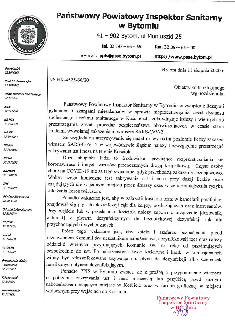 Pismo Państwowego Powiatowego Inspektora Sanitarnego - WAŻNE