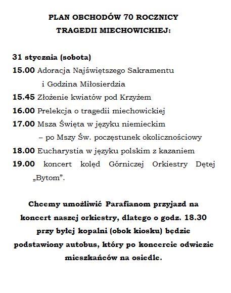 Plan obchodów 70 rocznicy tragedii miechowickiej