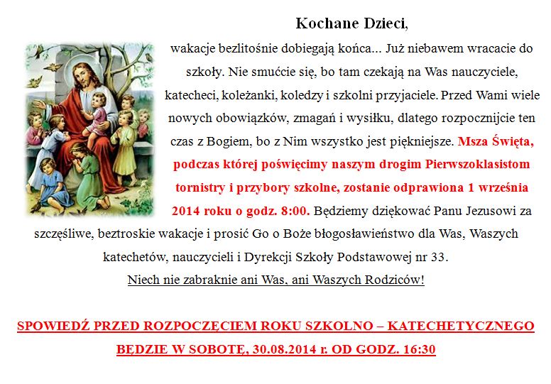 Poprzedni artykuł: Pielgrzymka do Sanktuarium Bożego Miłosierdzia i Sanktuarium św. Jana Pawła II w Krakowie Łagiewnikach, 23.08.2014 r.